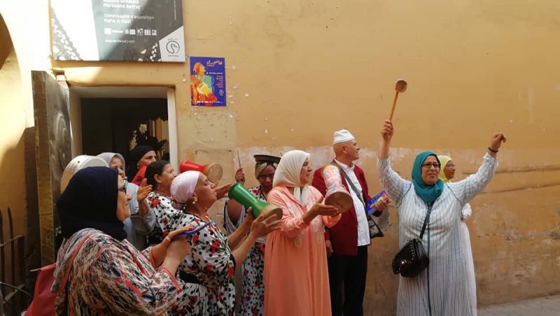 Le « devoir de mémoire » organisé par la Fondation Dar Bellarj vise la sauvegarde et à la préservation de Achoura à Marrakech et de la Daqqa Marrakchia, ce chant ancestral originaire de la ville ocre. A cette fin, la Fondation s’appuie sur un comité scientifique et artistique et s’adjoint la participation d’Awaln’art pour accompagner le développement du projet. Ce dernier consiste en un travail de collecte, d’archivage, de transmission et de valorisation des différents éléments et parties prenantes de la fête. Il invite ensuite l’ensemble de ses publics (habitants, artistes, universitaires et intellectuels, artisans, maâlems, jeunes, etc.) à se rassembler chaque année lors de fête de Achoura. “Ce rappel annuel contribue à renforcer les potentialités artistiques, culturelles et touristiques de la ville à travers la valorisation de son patrimoine immatériel”, souligne Maha El Mahdi, Directrice de la Fondation Dar Bellarj. “Il valorise les résultats de notre implication auprès des habitants du quartier et principalement les femmes, les ‘mamans douées’ “.