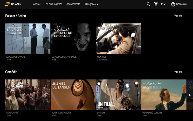 Le cinéma national étant sa vocation première, AFLAMIN se donne comme objectif de présenter la quasi-totalité du cinéma marocain d’ici deux ans. Les nouvelles acquisitions de films viendront ainsi incrémenter l’offre mois après mois et faire l’objet d’une éditorialisation dédiée, destinée à les mettre en avant.