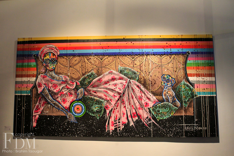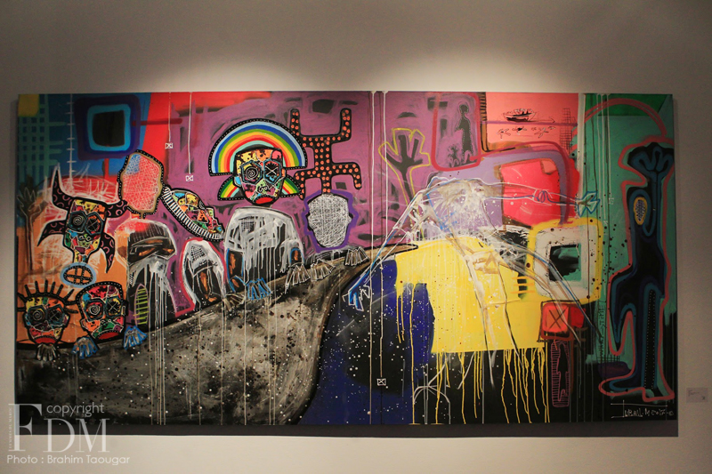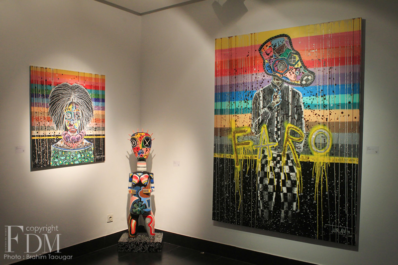 L’artiste ivoirien Médéric Turay a laissé sa “trace” à Casablanca, comme il aime qualifier sa signature. Il s’est littéralement approprié la Galerie 38, en y accrochant ses toiles, en y éparpillant ses sculptures et en y peignant même parfois sur les murs. Il a également combiné avec justesse les matériaux traditionnels aux techniques modernes : il construit, découpe, accumule, compose avec énergie et spontanéité des instants de vie. Un travail plein de finesse et de couleur abordant l’« African Dreamer », thème et nom de cette nouvelle exposition. A travers ses créations, le street artiste veut redonner espoir aux Africains qui ne cherchent qu’une seule chose, à quitter leur continent.