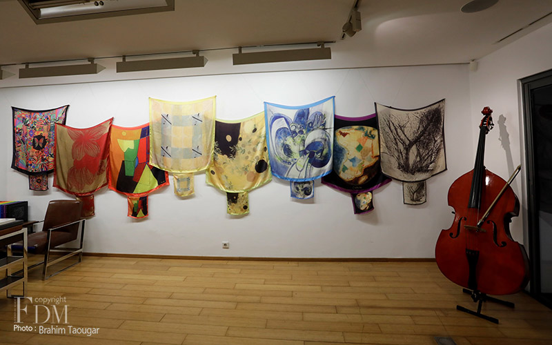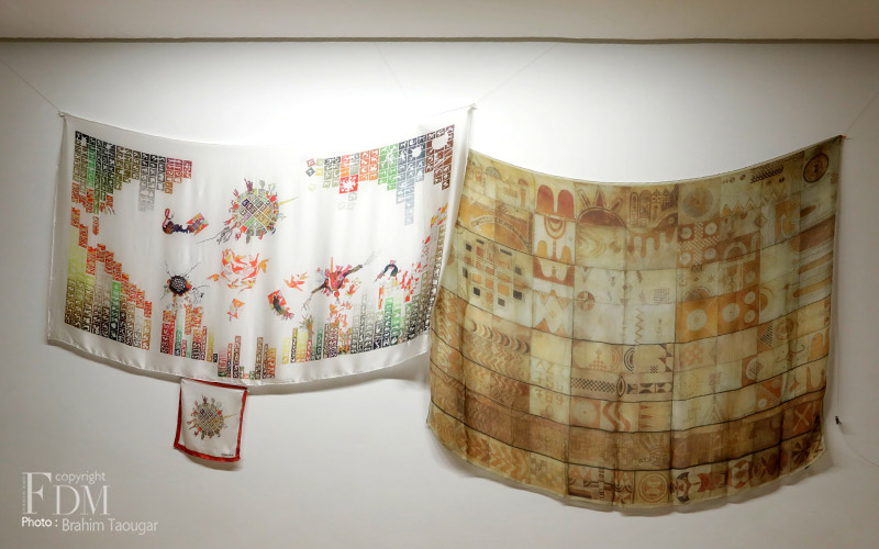La collection PANTAONE regroupe 13 coffrets composés de foulard en soie imprimées et de leurs pochettes d’artistes. Un foulard VIP Belkhahia lové dans un coffret en cuir et vendu accompagné d’une lithographie d’art accompagne la collection. Les coffrets toujours accompagnés de leur carte d’authenticité signée et numérotée par des artistes marocains. Ainsi, on retrouve dans la collection pantone les foulards de Nabil Bayahya, Najia Mehadji, Melehi, Hamidi, Mahi Binebine, Yamou, Miloud, Farid Belkahia et Rabi’. Un beau panel d’artiste marocains renommés qui se sont prêtés au jeu de l’interprétation et de l’édition d’objet d’art.