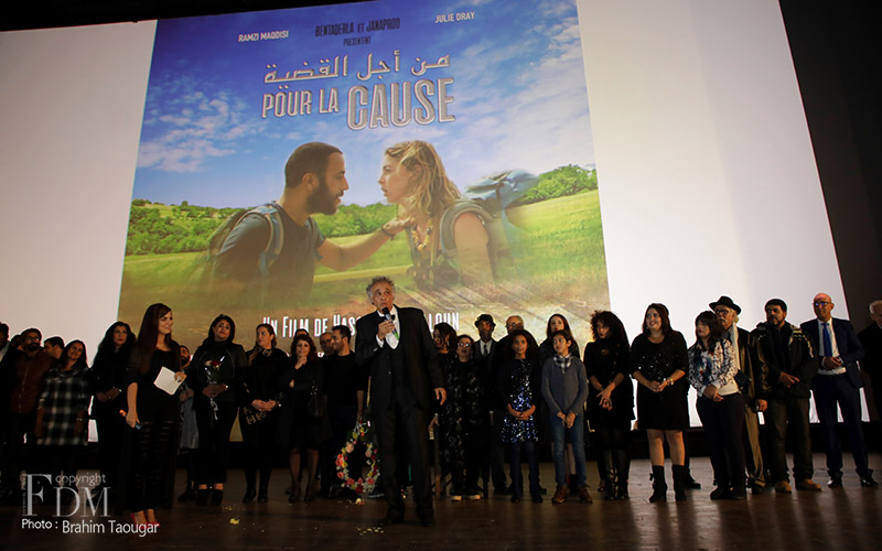 “Pour la cause” raconte l’histoire d’un jeune musicien palestinien (Ramzi Makdessi) vivant en Espagne et d’une chanteuse française d’origine juive (Julie Dry), venus au Maroc en provenance de Barcelone dans l’espoir de traverser l’Algérie via la frontière afin d’animer un concert à Oran avant de se rendre en Tunisie pour le même objectif. Cependant, à cause des procédures légales à la frontière, les deux jeunes vont vivre toute la nuit des moments difficiles.