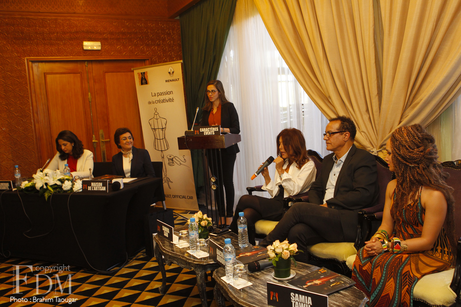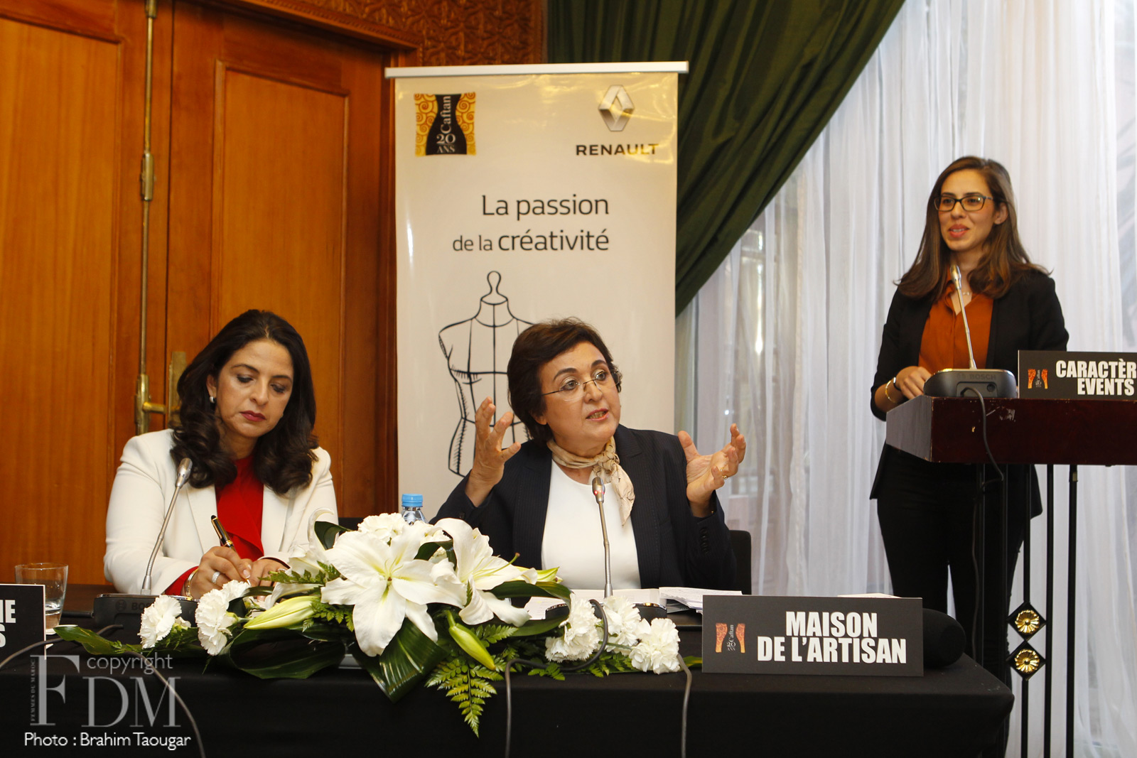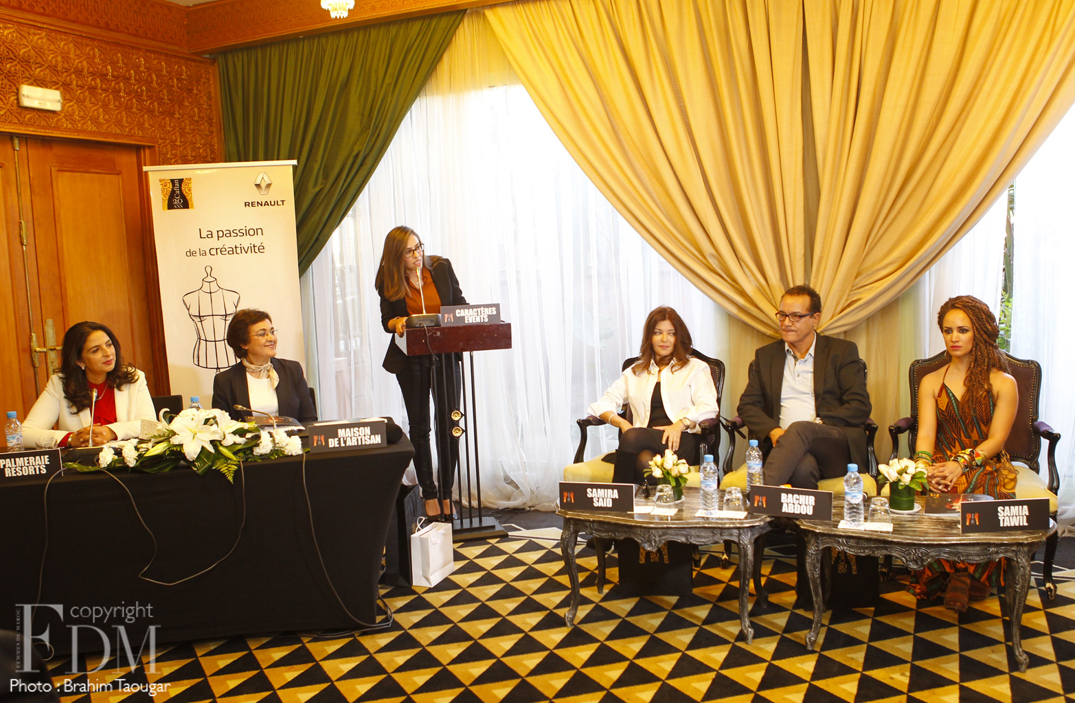 La conférence de presse de Caftan 2016 s’est tenue cet après-midi au Palmeraie Golf Palace sous la présence de la Ministre de l’Artisanat, de l’Economie sociale et solidaire, Fatema Marouane, de la Directrice de publication de FDM Zineb Taïmouri et de Soumia Chraibi, Directrice Communication & Relations Publiques chez Palmeraie Développement & Palmeraie Industries & Services. Etaient également de la partie la Direction artistique de l’événement (chapeautée par Malika Zaïdi), le représentant de SOS Village et les chanteurs devant se produire le jour J à savoir : Samira Said, Bachir Abdou et Samia Taouil. L’événement phare qui bouclera ses 20 ans samedi soir, n’a eu cesse depuis sa mise en place de porter le caftan aux nues tout en mettant en avant le savoir-faire des créateurs nationaux. Le défilé vivement attendu sera diffusé par la deuxième chaine samedi soir et présentera le travail de 14 stylistes en tout dont trois nouveaux talents. Suspens…
