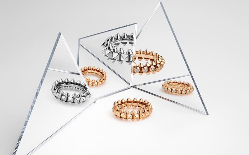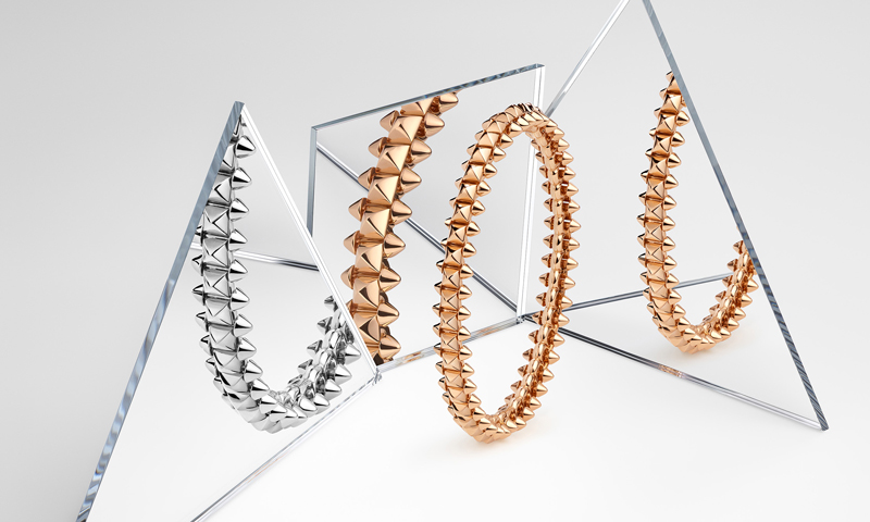 Et toujours les mêmes sensations de fluidité, de mobilité, celles d’un bijou qui secoue l’héritage esthétique de la Maison : picots, boules, clous carrés.
