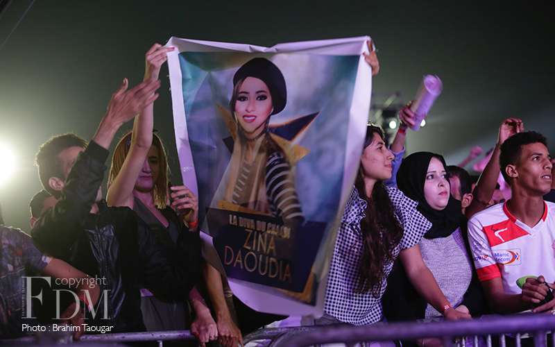 Après trois jours intenses, le Festival Timitar a réuni, pour sa dernière soirée, deux chanteuses de talent. Après la troupe Ahwach Tagmout et l’un des ambassadeurs de la musique amazighe à savoir Larbi Imghrane, Dounia Batma a mis le feu sur la scène de la Place Al Amal. Celle qui a conquis les coeurs des Marocains lors de l’émission Arab Idol 2012 a enchaîné ses titres ainsi que quelques reprises pour le public de Timitar qui a savouré son show du début à la fin. Sur scène, cette belle voix a ensuite laissé la place à une autre : Zina Daoudia. La chanteuse de Chaâbi, très influencée par l’Aïta, s’est forgée une place dans le milieu et se produit souvent à l’étranger. A Timitar, elle se considère comme faisant partie de la famille, comme elle l’a expliqué plus tôt dans une conférence de presse. On le sent. Et le public lui a donné un tonnerre d’applaudissement à la fin de chacun de ses titres. Côté platines, c’est le DJ Hassan, élu meilleur Dj au Maroc en 2011, qui a animé cette belle soirée de clôture. Le Festival Timitar organisé du 4 au 7 juillet, a ainsi une nouvelle fois réussi son pari : une série de shows, de belles rencontres, des (re)découvertes de talents venus des quatre coins du monde, et des moments d émotions avec cette programmation éclectique. Et la 16ème édition, c’est pour quand ?
