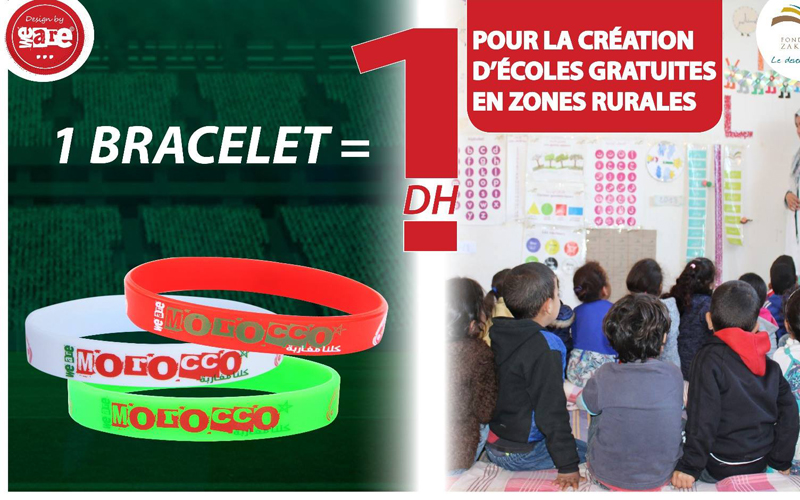 « We are Morocco, كلنا مغاربة », c’est le nouveau bracelet à avoir. La raison ? Le message derrière. Car « We are Morocco, كلنا مغاربة », c’est le soutien pour une éducation pour tous via la Coupe du monde de foot. Car les initiateurs de ce projet, à savoir la Fondation Zakoura et We Are Corporation, comptent bien sur le soutien des supporters de l’équipe nationale, et plus largement des citoyens marocains pour acheter ce fameux bracelet aux couleurs du Maroc. Car pour chaque bracelet acheté « We are Morocco, كلنا مغاربة » 1 dirham sera reversé directement pour l’éducation pour tous. Résultat : cette initiative va contribuer à créer plusieurs écoles de préscolaire en zones rurales ! Et, comme l’appuie la Fondation Zakoura, en portant ce bracelet, les supporters de l’équipe nationale porteront aussi un message haut et fort, par ailleurs gravé sur sa face intérieure : « L’éducation pour tous, tous pour l’éducation ».