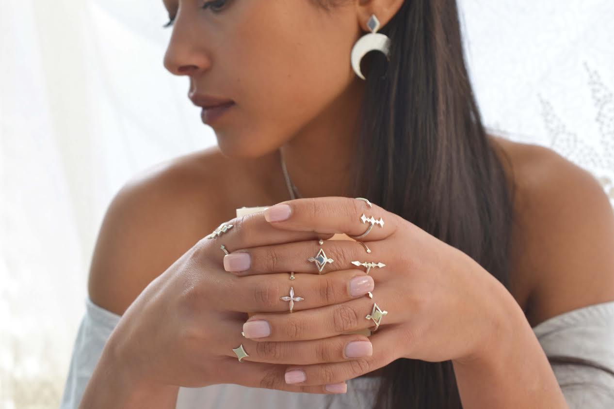 Belle. Puissante. Rebelle. « Enchanteresse » est la nouvelle collection de Rhita Benjelloun, l’initiatrice de la marque Rhita créations. Une ligne de bijoux fascinante qui célèbre la féminité mais pas seulement. « C’est une collection féministe », lâche tout bonnement la jeune créatrice également architecte de formation. Le déclic ? Le vent féministe qui souffle aux quatre coins du monde ainsi que la lecture du livre « Sorcières. La puissance invaincue des femmes » de Mona Chollet qui met en avant les sorcières des temps modernes, à savoir les femmes indépendantes, les femme savantes, ou les femme vieillissantes. Le bouquin la captive jusqu’à citer dans le catalogue de sa collection une phrase de l’auteure reprenant à son tour le manifeste de 1968 du mouvement féministe américain Witch (« sorcière » en anglais) : « Si vous êtes une femme et que vous osez regarder à l’intérieur de vous-même, alors vous êtes une sorcière ». Cette phrase la marque. « Nous avons toutes au fond de nous un pouvoir, glisse-t-elle. Nous pourrions le qualifier de magique puisque nous avons le pouvoir de donner la vie et nous avons aussi l’instinct maternel ». Rhita Benjelloun confectionne ainsi des bijoux « magiques ». « Ce sont des boucles d’oreilles totems pour se sentir puissantes, des bagues fines portant les symboles de la féminité, et des colliers talismans pour protéger, composés de quatre symboles que j’ai décliné à chaque fois pour en donner des compositions différentes », révèle-t-elle. Ainsi, on trouve le croissant de lune évoquant la puissance féminine, le losange qui symbolise la fécondité et la féminité ou encore le rond pour l’unité et la vie. Autre particularité ? Rhita Benjelloun qui a l’habitude de jouer sur le pouvoir des pierres, a étonnement voulu les laisser de côté. La force des symboles a pris le dessus. « Enchanteresse » est incontestablement « une ode à la femme », comme la créatrice le dit si bien. « Chaque bijou est conçu pour célébrer la femme. Qu’importe sa couleur, sa morphologie, son physique, ou son âge. Cette collection est là pour porter un message et le crier haut et fort : Moi femme, charmeuse et envoutante, guerrière et rebelle, je suis magie, je suis sorcière enchanteresse », poursuit-elle. Et nous, elle nous a conquis !