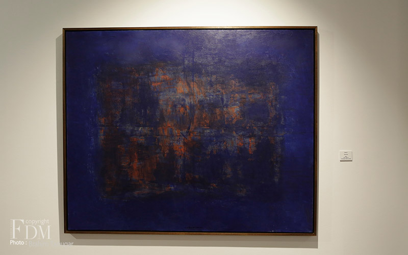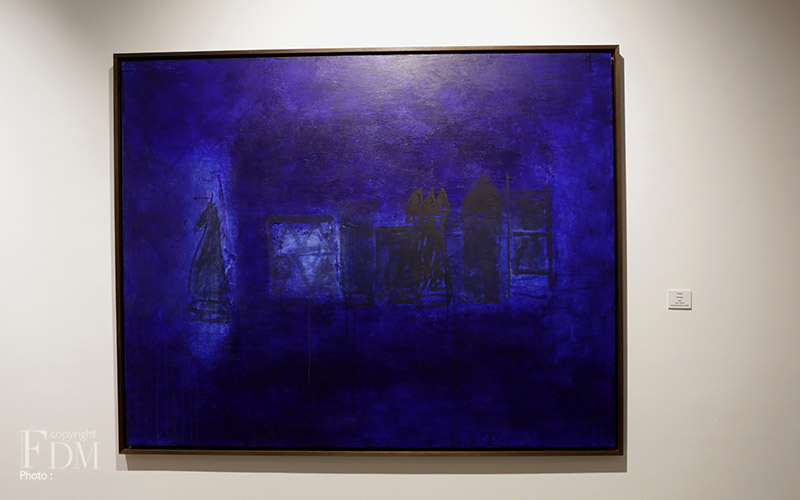 L’un de ces derniers corpus, au titre poétique de Chants de nuit marque une étape dans la carrière de l’artiste. Il entreprend alors la réalisation de grands monochromes dont la force émotionnelle témoigne de sa dextérité et de sa grande maîtrise de la couleur. Ici, toute trace narrative ou décorative sont effacées de la peinture. Les toiles immenses, réalisées à l’aide de pigments naturels mêlant le bleu et les nuances de beige rosé, de blancs et d’ocres, suscitent une émotion intense. Saâd Hassani peint le silence, les rêves qui s’éloignent, les obsessions qui se dissipent et le temps qui passe. Il peint la beauté du monde et sa douleur. Chacune de ces grandes toiles présentent dans sa partie centrale une bande horizontale incorporant l’intention d’un langage à la gestuelle affirmée, laissant percevoir les vibrations d’entrelacs de matière ouvrant sur un monde nouveau.