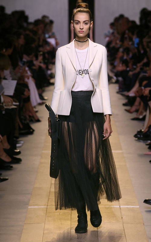 Le défilé prêt-à-porter printemps-été 2017 de Dior, qui s’est déroulé vendredi 30 septembre au musée Rodin, était très attendu. C’était en effet le premier examen de passage de la nouvelle directrice artistique de Dior, Maria Grazia Chiuri, première femme à tenir les rênes de la mythique maison. Une collection inspirée de l’escrime, résolument féministe, où blanc et noir habillent un vestiaire épuré orné d’accessoires omniprésents. Les people et égéries étaient au rendez-vous et ont apprécié… Résumé en images.