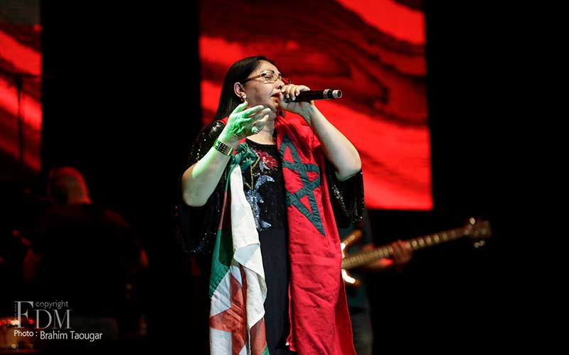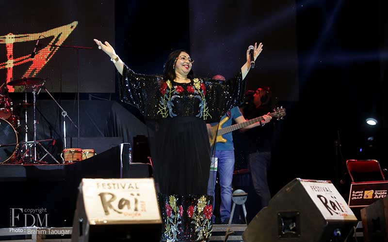 De son vrai nom Halima Mazzi, la diva du rai a chanté et enchanté les festivaliers, venus en masse à la scène Stade d’Honneur, d’un cocktail musical puisé dans son riche répertoire dont notamment “Rani Nebghik”, “Mama” ou encore ” Hbibi”.