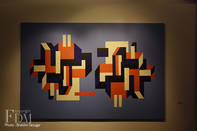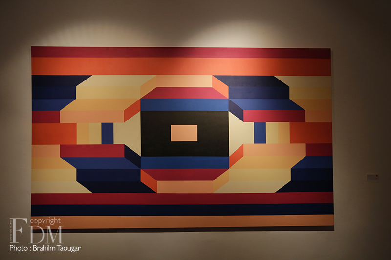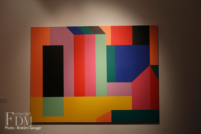 Adepte de l’abstraction géométrique, Ghizlane Agzenai a recours à des formes et à des couleurs contrastées, disposées en aplats, mais aussi parfois en sculpture pour jouer avec la perception des spectateurs. Inspirée par les espaces, l’artiste manipule à la fois l’image et l’arrangement de l’objet, de sorte à ce que son public observe, analyse, et devienne pour ainsi dire acteur de ses œuvres.