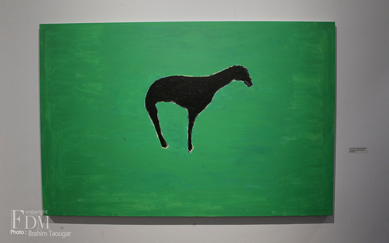 Composée de peintures et de dessins cette exposition tire un intérêt sans cesse renouvelé pour la représentation botanique ou zoologique, pour la faune et la flore, avec une poésie solitaire et mélancolique. On retrouve aujourd’hui encore cette empreinte profonde dans son œuvre, dans la manière de traiter les sujets en formes élémentaires et dépouillées. Dans la palette des noirs, des silhouettes se dessinent, presque minimalistes. Les formes archétypales, parfois au bord de l’abstraction, semblent aspirer à dégager une essence des formes, comme une tentative de saisir les choses, quel qu’en soient leurs variations réelles. C’est une tendresse que Selfati présente dans une harmonie où ne compte que la beauté d’une splendide gratuité. Des créatures étranges surgissent spontanément. Aucune règle ne semble être appliquée, et pourtant une harmonie se dégage de cette désharmonie créative.