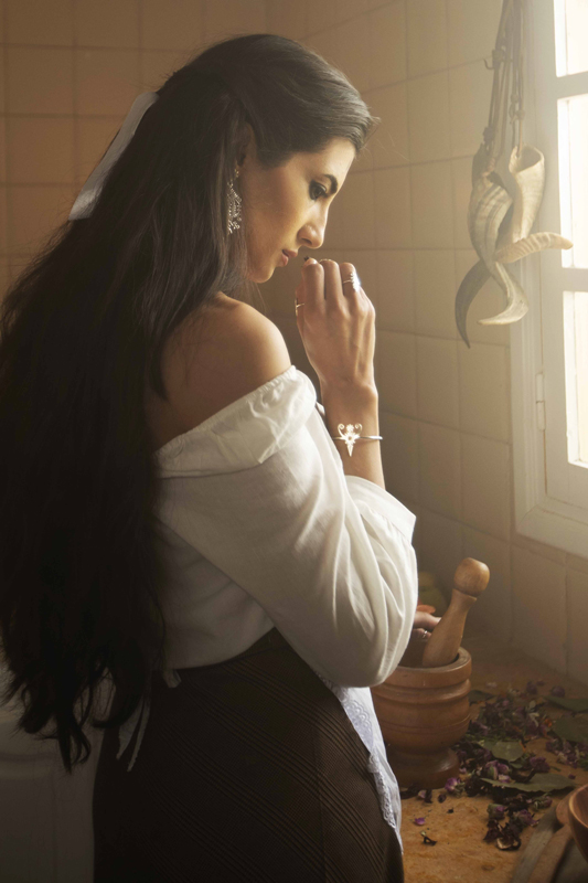 Kandishan… Aicha Kandisha… Ce personnage féminin aussi fascinant et passionnant qu’effrayant a inspiré Rhita Benjelloun, la fondatrice de la marque Rhita créations, qui présente sa nouvelle collection sous le nom « Kandishan ». « Ce qui m’intrigue le plus à son sujet, c’est qu’elle est crainte par certains et admirée par d’autres », explique la créatrice qui a notamment été absorbée par le livre « Sorcières. La puissance invaincue des femmes » de Mona Chollet qui met en avant les sorcières des temps modernes, à savoir les femmes indépendantes, les femme savantes, ou les femme vieillissantes. « Après de nombreuses recherches pour ma nouvelle collection, c’est l’angle que j’ai choisi d’adopter. Plutôt que de la craindre, j’ai choisi d’embrasser sa force et son intelligence, et de célébrer son esprit libre, son charme et sa bravoure dans la lutte pour ses droits et la justice pour son pays », poursuit cette pétillante jeune femme qui a confectionné des bijoux pour se sentir puissantes !