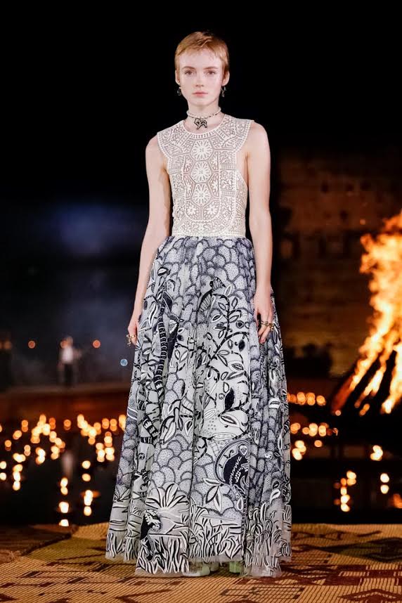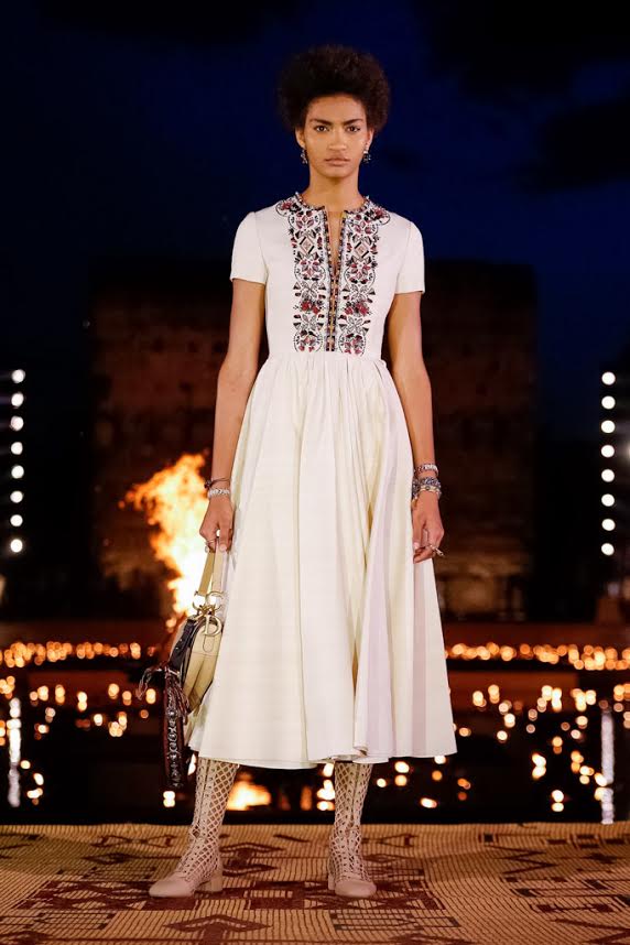 C’était un défilé attendu… et remarquable ! La Maison Dior a convié 800 privilégiés à venir découvrir son éclatante collection « Croisière 2020 ». Une magnifique présentation qui s’est déroulée lundi 29 avril à Marrakech avec notamment la présence remarquée de quelques célébrités comme l’actrice américaine Jessica Alba, le mannequin Karlie Kloss ou encore la chanteuse Diana Ross qui est montée sur scène à la fin du show spectaculaire mis en scène dans un le cadre unique qu’est le Palais Badi. En d’autres termes, un défilé unique signé par Maria Grazia Chiuri qui a mis à l’honneur le savoir-faire africain en utilisant notamment dans sa collection du Wax ainsi que de magnifiques imprimés. La créatrice italienne a également collaboré sur une pièce avec l’association marocaine Sumano qui se dédie à la protection du savoir-faire de la région de l’Anti-Atlas, comme le fait savoir le site Fashion network. Ladite pièce ? Un manteau tissé et peint à la main selon la tradition. Maria Grazia Chiuri a aussi mis en avant la beauté marocaine en faisant appel au mannequin britannique d’origine marocaine Nora Attal qui a notamment fait la couverture de Vogue Arabia.