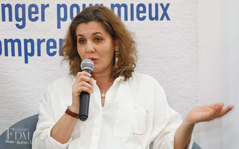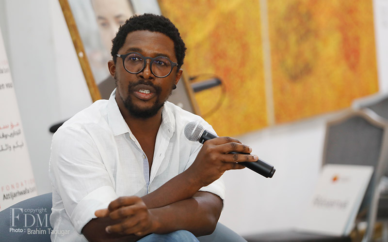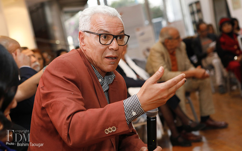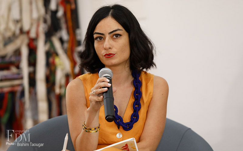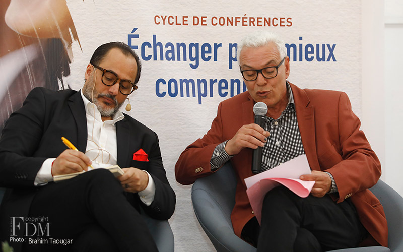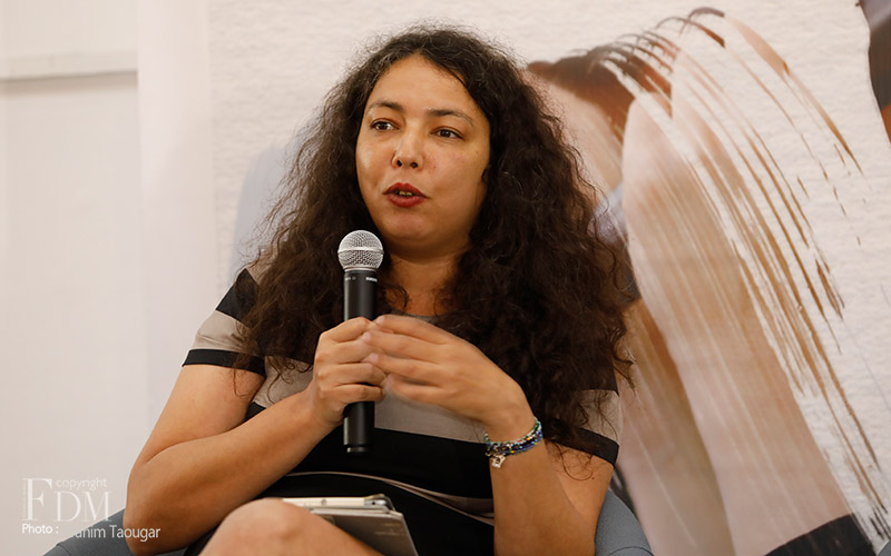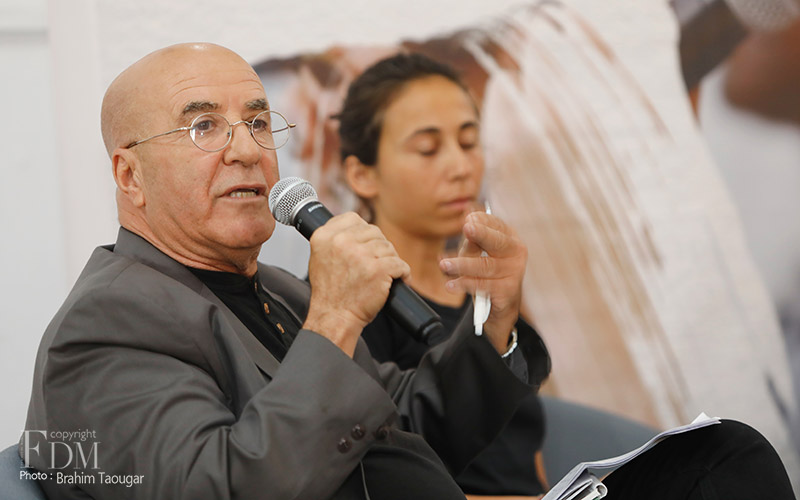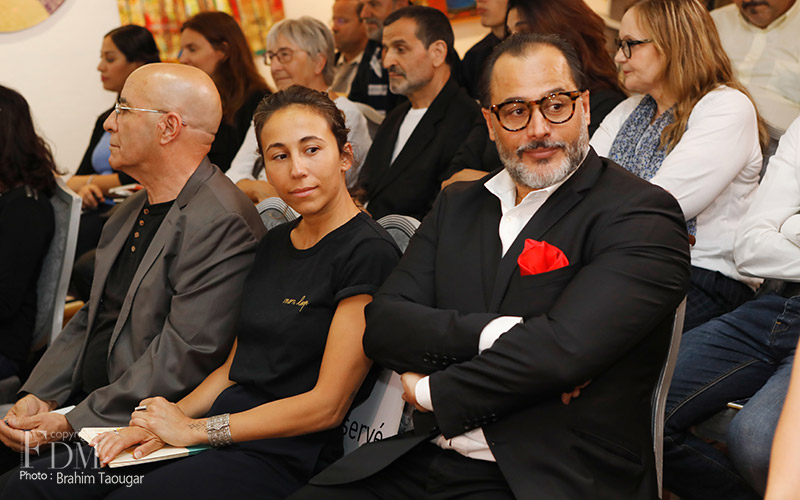 La rencontre organisée à cette occasion et modérée par Abdelhak Najib a connu deux temps forts : un premier panel a réuni Farid Zahi, philosophe et critique d’art, Syham Weigant, critique d’art et Meriem Berrada, directrice artistique du MACAAL (Musée d’Art Contemporain Africain Al Maaden), et un second panel dédié aux témoignages d’artistes et d’acteurs culturels, à savoir Ghita Triki, commissaire de l’exposition et Abderrahmane Ouardane, président de l’association ARKANE, qui ont initié l’exposition « Travel Weast », et deux artistes dont les œuvres y sont exposées, Maya-Ines Touam, photographe plasticienne et René Tavares, artiste plasticien.