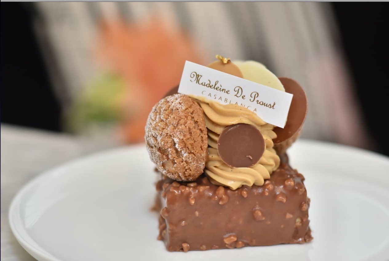 “Aujourd’hui Madeleine de Proust existe grâce à cet homme extraordinaire qui a toujours cru en moi et qui m’a accompagné et soutenu alors que ça paraissait être un projet fou. Il est décédé peu de temps avant la parution officielle de Madeleine de Proust au JO. Ma madeleine de Proust, le gâteau russe, qui est une succession extrêmement fine de disques de biscuit et de crème au beurre. C’est mon grand-père qui vivait à Marrakech et m’en apportait un chaque fois qu’il nous rendait visite à Casablanca qui me l’a fait découvrir. Il l’achetait chez Mirgon, une institution de la Ville Ocre. C’est d’ailleurs lui qui est à l’origine de mon activité, et du nom Madeleine de Proust”, poursuit la jeune pâtissière.