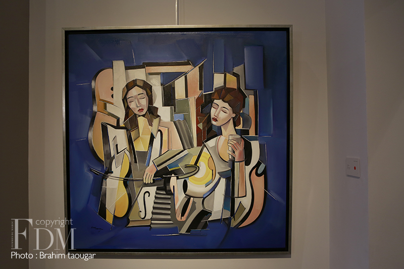 La plasticienne Mounia Amor Cheikh Lahlou livre à travers ses dernières créations une vision subliminale du monde. Son univers pictural joue sur la dualité de l’ombre et de la lumière une partition scintillante qui met à l’honneur des scènes de vie à la singularité fascinante. Les traits géométriques, les visages déstructurés, les courbes anguleuses et les formes cubiques s’habillent tantôt de couleurs chaudes, tantôt de couleurs froides pour révéler des détails d’une belle précision.Des lumières, chaudes et douces, et des courbes mouvantes, insufflent un air pur à chaque création.