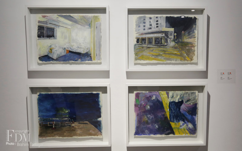 Essentiellement composée de peintures et de dessins, l’exposition intitulée “Promenade solitaire” faut écho à l’ouvrage de Jean-Jacques Rousseau “Rêveries du promeneur solitaire”, une série de réflexion de l’écrivain sur la nature de l’Homme et son esprit. Contemplative, les oeuvres de Sanae Arraqas appellent à un isolement relatif et produisent une forme d’empathie, une invitation à un mode de pensée. D’une main sûre et d’une solide technique Sanae Arraqas parcourt les aubes et les crépuscules en se protégeant des clartés trop aveuglantes, des évidences trop envahissantes et des présences humaines trop réelles.