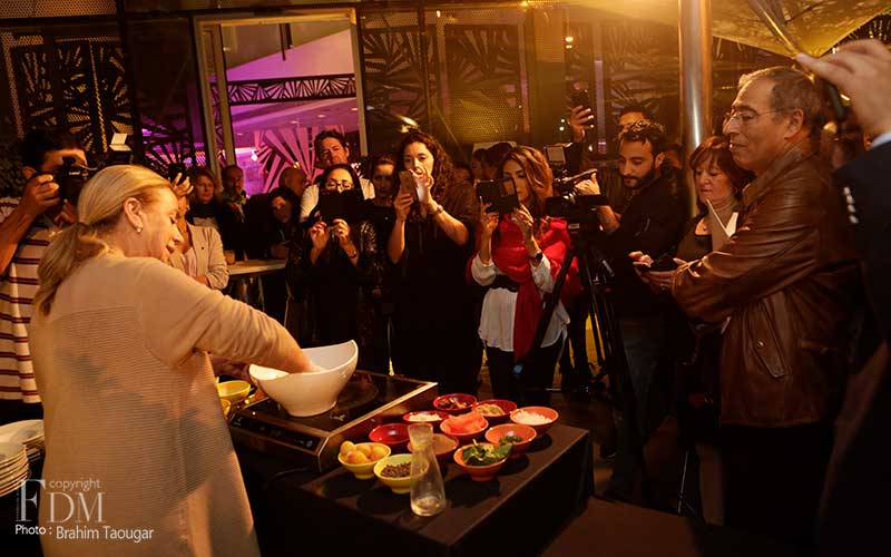 À cette occasion, Fatéma Hal et Maguy Kakon ont fait voyager le public, venu nombreux, le temps d’une soirée, dans l’univers de l’art culinaire et de la préservation du patrimoine. La soirée a été clôturé par un cooking show au cours duquel Fatéma Hal, Chef et Propriétaire de La Mansouria à Paris a présenté une recette datant du 11ème siècle tandis que Maguy Kakon, grande spécialiste de la cuisine juive marocaine et auteur de plusieurs ouvrages à succès a présenté une recette tirée de “L’oriental marocain, des siècles d’art culinaire juif “.