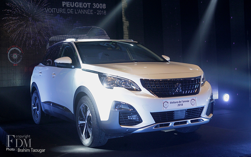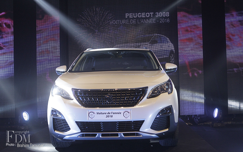 La “Voiture de l’année 2018” dévoilée le 1er février à Casablanca est la Peugeot 3008. À noter que pour les Trophées des meilleures voitures par catégorie, les votes ont récompensé les véhicules suivants : Renault Clio IV (Citadines) ; Hyundai i3 (Moyennes) ; Mercedes Classe C (Familiales) ; BMW Série 5 (Grandes routières), Porsche Panamera (Prestigieuses) ; Fiat Doblo (Breaks & Monospaces) ; Volkswagen Coccinelle (Coupés & Cabriolets) ; Alfa Romeo Stelvio (4X4).