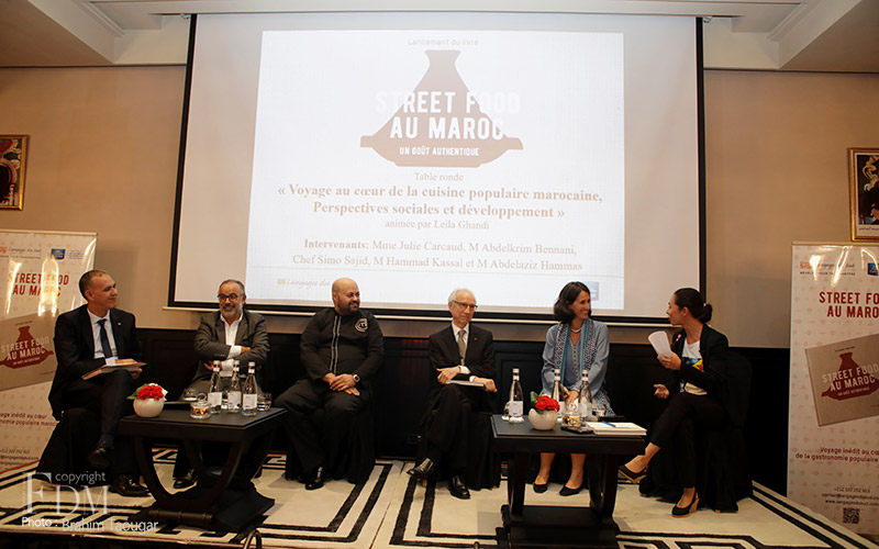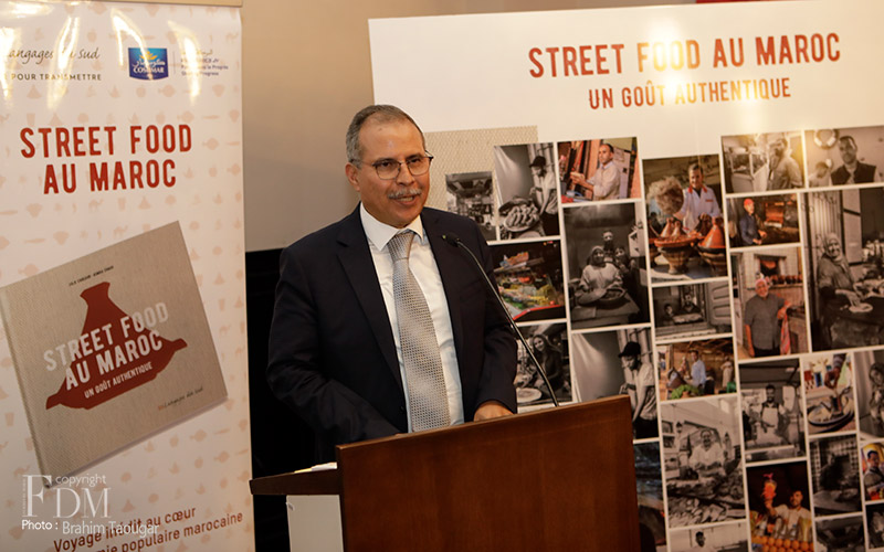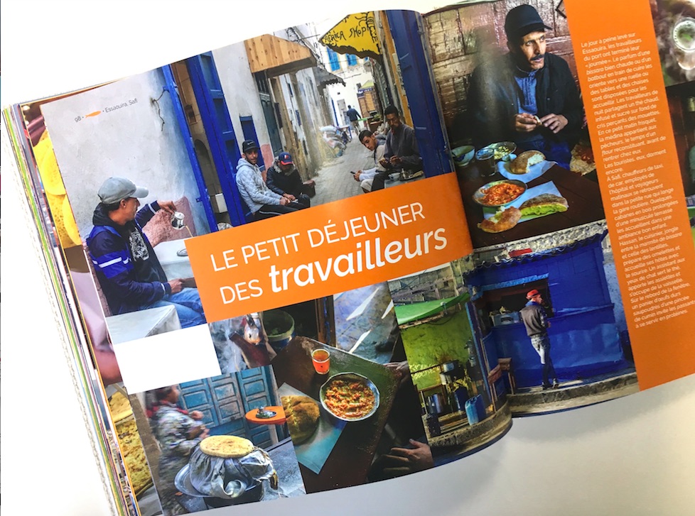 Street Food au Maroc, un goût authentique, réalisé et publié par les éditions Langages du Sud, est un documentaire sur la culture culinaire populaire marocaine, un véritable reportage sur le Maroc d’aujourd’hui et ses valeurs de partage et de solidarité. L’aventure commence à Tanger, au Nord du pays, par le thé traditionnel Atay chebbari avant de se poursuivre vers le sud. Une halte à Fès, pour l’incontournable Bissara. A Casablanca, on déguste un bouillon d’escargots en sortant de la dernière boîte de nuit en vue ; plus au sud, près de Dakhla, on découvre le goût si n de la viande de dromadaire. Chaque ville, chaque région a ses spécialités : sardines, tajines, boudins mais aussi beignets, crêpes et pâtisseries colorées à profusion. Au détour des ruelles animées des médinas ou dans les villages de montagne, cet ouvrage inédit dans son hommage à la gourmandise témoigne d’un art de vivre → et fait entreprendre au lecteur un voyage à la rencontre du Maroc et de ses habitants.