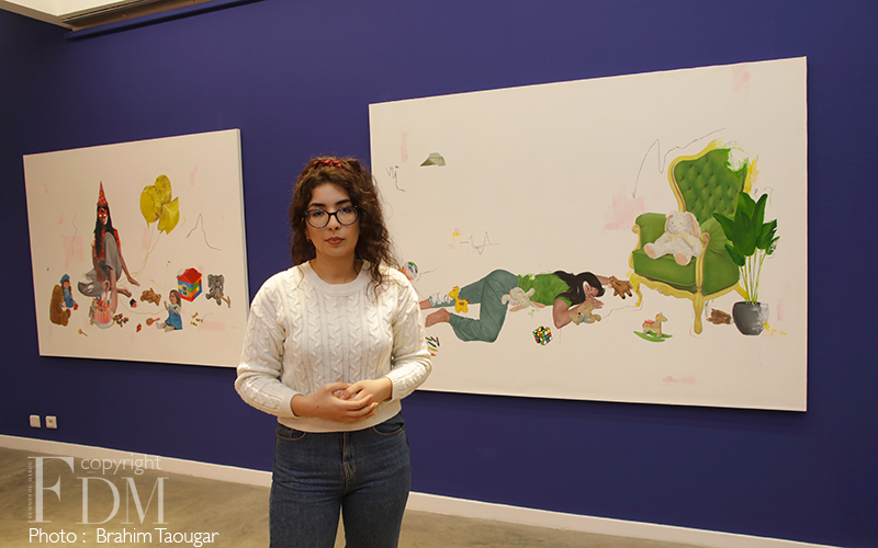 Née en 1996, Rahma Lhoussig est originaire de Taroudant. Diplômée de l’Institut National des Beaux-Arts de Tétouan, elle a participé à des master classes dans divers domaines tels que la recherche artistique, la gravure, la sérigraphie.Récemment, elle a effectué des résidences au Jardin Rouge (Fondation Montresso) à Marrakech. En mars 2020, elle a eu une exposition personnelle à la galerie Kulte à Rabat. Les peintures et dessins inédits de l’artiste représentent une iconographie de l’inachevé.