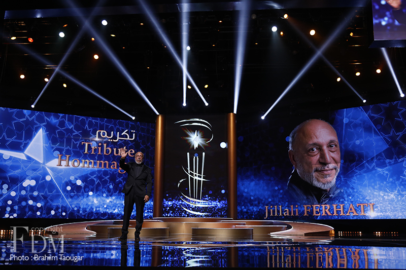 Au micro, Jillali Ferhati a tenu à exprimer ses « remerciements les plus vifs » à SM le Roi Mohammed VI pour son inconditionnel soutien au cinéma national, tout en exprimant également toute sa gratitude à SAR le Prince Moulay Rachid pour « l’indéniable cinéphilie de Son Altesse Royale et l’effort qu’il ne cesse de fournir pour que le cinéma marocain brille par sa présence dans un festival aussi prestigieux, à savoir le Festival International du Film de Marrakech ». De vifs remerciements ont aussi été lancés au public « pour l’amour que vous me portez ».