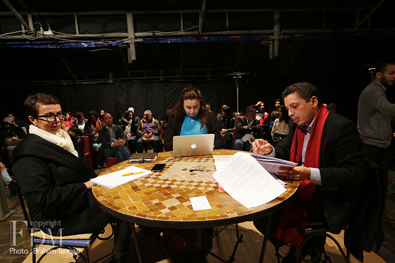 Pour le retour du Café Politis ce 31 octobre à La Sqala, on a abordé le sujet du harcèlement sous l’angle « Harcèlement, une loi certes ! Mais quelle(s) réalité(s) sur le terrain ? ». En effet, le 12 septembre dernier, la loi n°103-13 relative à la lutte contre les violences faites aux femmes est entrée en vigueur. Et même si « elle ne donne pas entièrement satisfaction aux associations et aux militantes de la cause de la femme, elle a le mérite d’exister », comme le soutient, dans une chronique publiée dans Aujourd’hui le Maroc, Ahmed Ghayet, fondateur de l’association Marocains Pluriels qui porte Café Politis avec l’association Sqala. Et de rappeler justement le quotidien d’une femme au Maroc : il est « difficile (…) d’évoluer dans le respect, la confiance et la dignité auxquels elle a droit dans notre espace public : interpellations, remarques sexistes, vexations, propos ou gestes déplacés sont hélas trop souvent son lot… » Pour débattre de ce thème, Sanaa El Aji, directrice de rédaction de Marayana.com, sociologue et auteure de « Sexualité et célibat au Maroc », Khadija Boujanoui, présidente du Comité parité et diversité de 2M et Me Youssef Chehbi, avocat qui ont parlé et décortiqué sans détour le harcèlement, avant de répondre aux interrogations et surtout aux craintes du public venu nombreux.