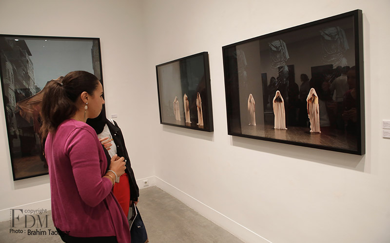 “À la lumière des corps” est le titre bien choisi d’une exposition qui transporte le visiteur au coeur des somptueuses photographies de Majida Khattari. L’écrivain, essayiste et dramaturge Rachid Benzine qui n’est autre que le commissaire de l’exposition évoque le travail de l’artiste en ses termes : « Dans la composition très minutieuse de ces photos, il y a la recomposition de la vie, le désir de rassembler les bouts éparpillés d’existences éclatées et salies, et de les faire passer de l’ombre de la douleur à la lumière de la renaissance. Les clairs-obscurs, les jeux de lumière, la tragédie qui côtoie la beauté : oui, il y a bien quelque chose de consolant dans ces tableaux. » Il est vrai que Majida Khattari fait partie des rares artistes contemporains qui placent la notion du beau au centre de leur démarche esthétique. Le résultat est époustouflant de beauté sereine et mystère qui plongent le spectateur dans un univers à part, où la beauté rend moins douloureuse l’acuité du tragique.