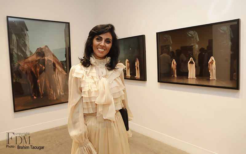 Pour rappel, Majida Khattari est connue depuis 1996 pour créer des défilés-performances inspirés de la situation des femmes dans les sociétés arabes, comme l’explique la galerie d’art dans un communiqué, précisant qu’elle met en scène des modèles qui portent des « vêtements-sculptures » traitant du statut de la femme mais se référant également à l’actualité politique contemporaine, aux questions de laïcité et de religion. Sur les murs de L’Atelier 21, une série de photographies représentant des mises en scène construites pour revisiter les clichés qui dominent la peinture orientaliste.