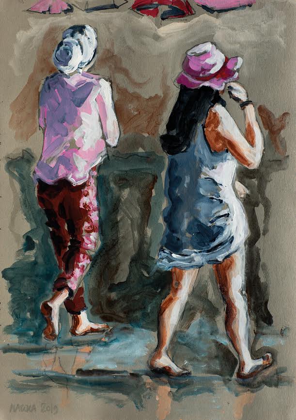 Vivre ensemble, un mot fort sur lequel a travaillé l’artiste Malika Demnati El Mansouri qui présente son exposition 8 au 26 mars à Bab El Kebir. Après des paysages et des natures mortes, la petite-fille de la peintre et voyageuse, Geneviève Barrier Demnati (1893-1964), a ainsi peint des hommes et des femmes, observés sur la plage de Bouznika. A travers sa série ressemblant à un journal d’artiste ou à la chronique de Bouznika plage, on y découvre des estivants, seul(e), en couple ou avec leurs enfants, vêtus de toutes les manières possibles qui a ainsi attiré le regard de l’artiste. Car elle a « vu se croiser deux identités, deux personnalités, deux mentalités, deux vies tellement différentes, avec une indifférence sereine, une femme en burqa et une femme en bikini…, explique-t-elle dans un communiqué. Cette vision m’a touché et donné une furieuse envie de peindre, surtout de peindre ce Maroc que j’aime tellement, si tolérant, si divers et différent à la fois. » En clair, une tolérance qu’a retranscrite avec talent l’artiste.