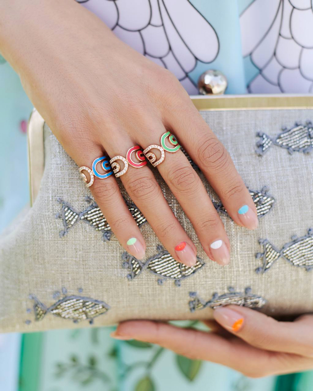 Les prestigieuses galeries Le Printemps Haussmann à Paris accueillent la nouvelle collection Printemps/Été 21 de la talentueuse Mimia LeBlanc. Une vraie consécration pour la créatrice d’origine marocaine et sa marque de joaillerie à la pointe des tendances. Joliment appelée Heart Attach, la collection pleine de couleurs, de joie et d’amour, est constituée d’ensembles de boucles d’oreilles, pendentifs et bagues.