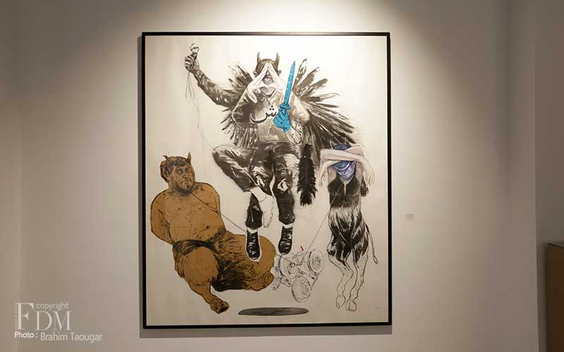 Marquées de sa culture marocaine, les œuvres de Lekleti, inédites et exposées pour la première fois au Maroc, présentent des codes, des symboles liés à son histoire mais plonge le spectateur dans un monde qui dépasse toute définition confinée pour “raconter des trajectoires de vies humaines, évoquer la précarité de l’existence, rendre compte de notre perception du monde” (Catherine Rigollet). “Et personne ne peut prétendre avoir une perception juste. Elle est déformée par notre vécu, notre culture, nos croyances » ajoute-t-il. La présentation des œuvres de Lekleti au Maroc résonne comme un retour aux sources et à ses origines tout en s’adressant à l’inconscient collectif des différentes composantes du Maroc et du continent africain dans son ensemble.