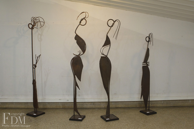 Fier de ses racines africaines, le plasticien nous propose également une série de sculptures consacrée à la femme africaine dans tous ses états : depuis la reine, la fiancée en passant par la femme enceinte jusqu’à la femme en colère qui décide de tout plaquer pour partir avec son petit. Une métaphore pour signifier le rapport de l’Homme à la femme dans une société qui la juge en permanence. « La femme n’est pas trop gâtée par notre culture, on la juge tout le temps, et donc, notre rapport avec la femme n’est jamais innocent ! », s’indigne Ghazlani.