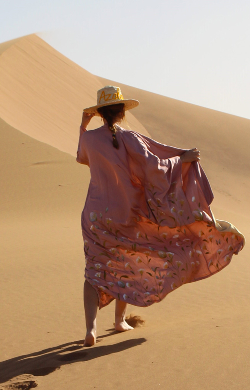 Un vrai souffle de liberté pour les femmes rebelles et indépendantes. Le tout porté par une designer talentueuse qui a su marier avec brio ses deux passions, l’art et la mode. Et derrière l’Atelier Ola Sol, la marque pétillante à l’esprit solaire qui fait de plus en plus parler d’elle, se cache Nadia Pereira, portugaise installée au Maroc depuis 17 ans. Fascinée depuis toute jeune par l’univers artistique, c’est tout naturellement qu’elle poursuit des études d’arts appliqués, dont le stylisme, à Paris. Sa vocation se porte d’abord sur la peinture et la décoration. Résolument manuelle et débordante de créativité, Nadia se sent pleinement épanouie lorsqu’elle peint une toile, restaure des meubles ou sublime des objets. Son atelier se transforme rapidement en un temple artisanal du bonheur, où le temps s’arrête un moment pour laisser libre cours à son imaginaire. Et c’est justement dans cet univers foisonnant de créativité que Nadia a donné naissance à sa toute première ligne de vêtements, et à sa collection “LUZ”.