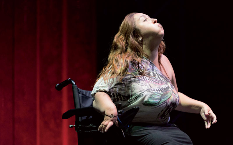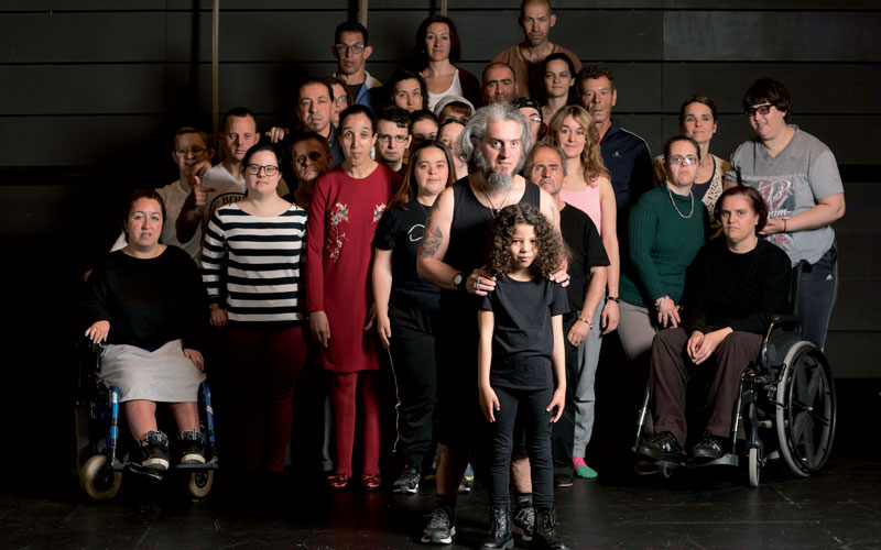 Pour certains, c’est la première fois qu’ils montent sur scène et jouent au théâtre. Pourtant, leur manque d’expérience est à peine visible. Ils investissent la scène sans crainte, et en font un espace où ils s’expriment et affirment leur personnalité. À les voir jouer ensemble, avec autant de complicité, on jurerait qu’ils se connaissent depuis toujours, or ce n’est pas du tout le cas. Cela fait à peine trois semaines, depuis le 16 mai dernier plus exactement, qu’ils se sont rencontrés pour la première fois à Madrid. Et pendant toute la durée de la résidence, ils ont répété, échangé, chanté, dansé, voyagé… Ensemble, ils ont créé un spectacle pour faire découvrir au public la richesse d’un monde, souvent caché, celui des personnes ayant des capacités différentes.
