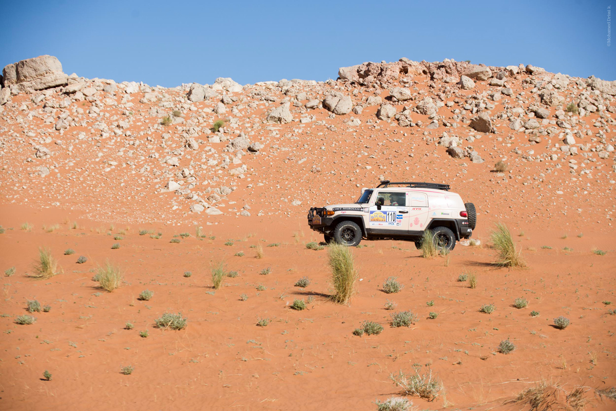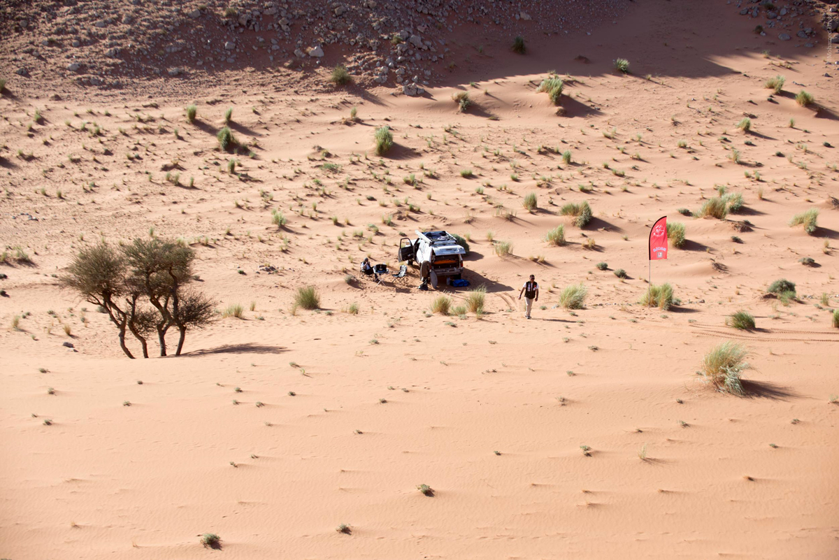 Toujours de bonne humeur, le duo Souiri a pu faire ses 8 balises, lors de cette quatrième étape. Devant l’œil des photographes et caméramans, Christine est au volant. Elle sous-estime une impressionnante montée. Arrivée en haut, elle ralentit et s’ensable. Elles se sont rapidement sorties. Ce fut le seul incident. Le retour au bivouac a été laborieux, elles sont arrivées à l’atteindre à 21h15.