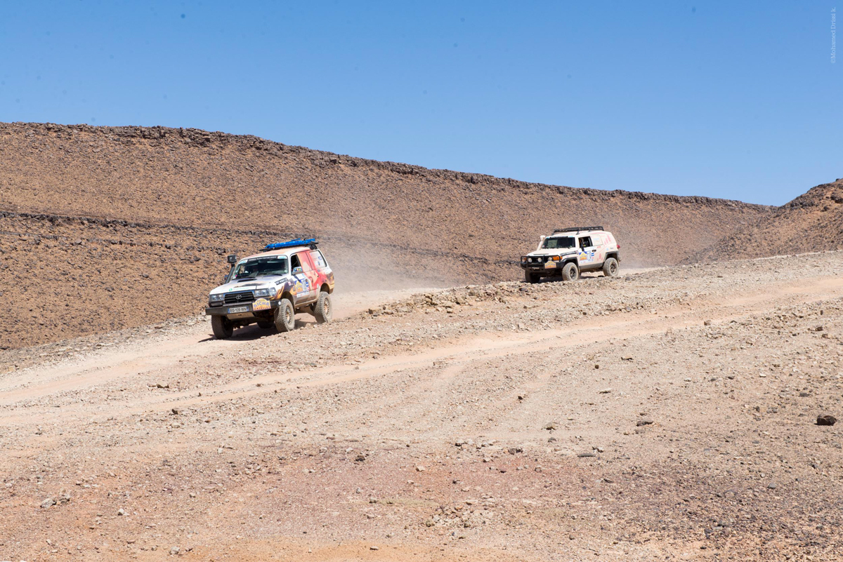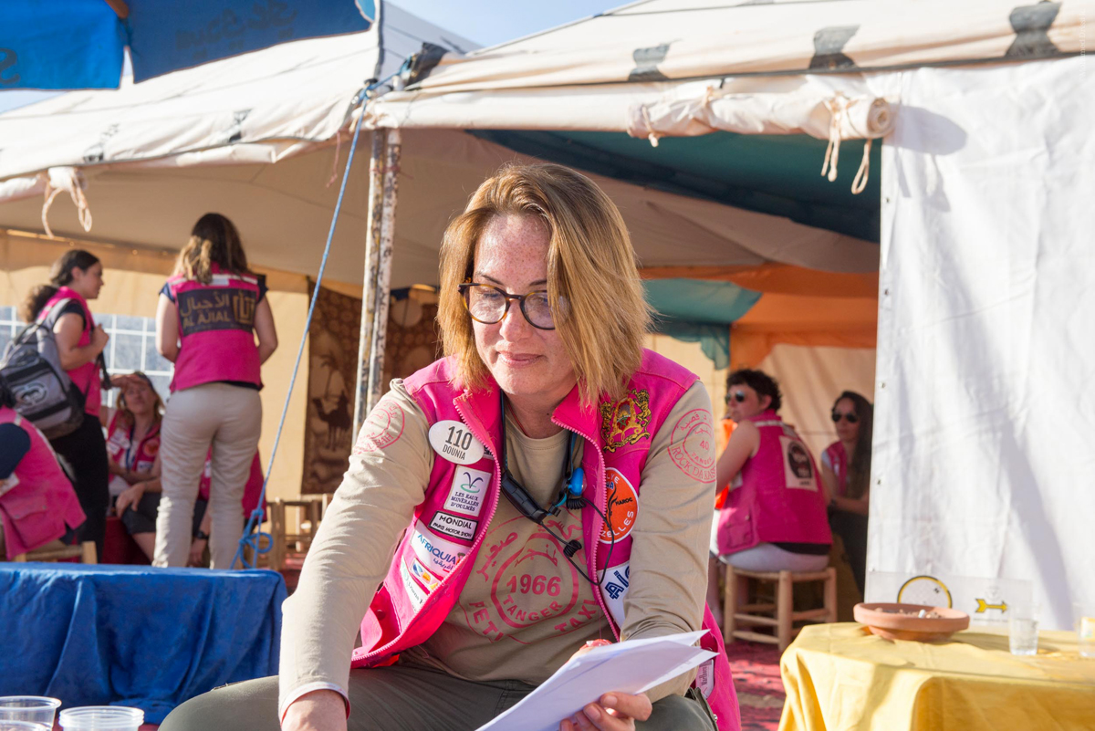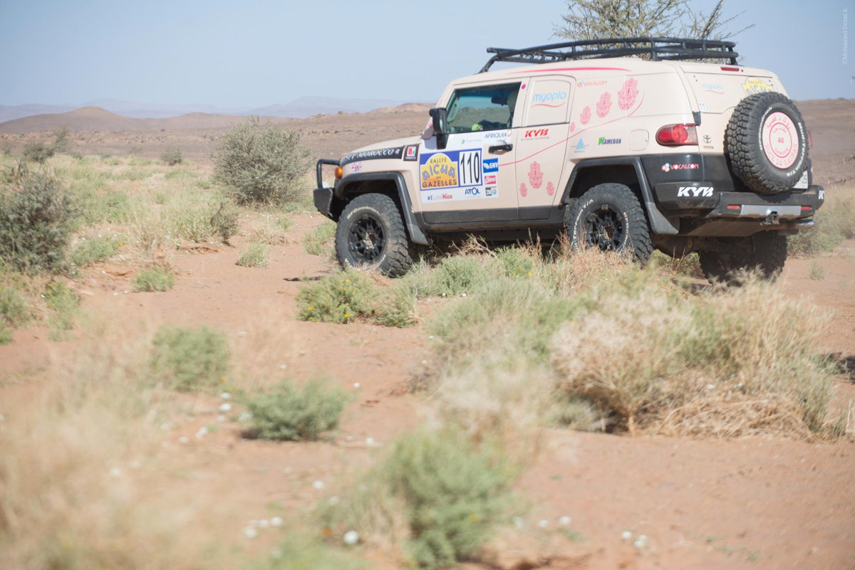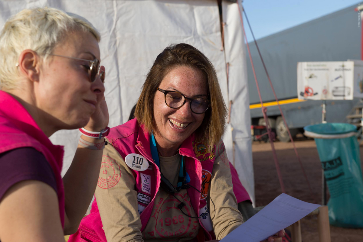 Très joviale, ce duo chantonnait Marina Hind, Marina Hind lors de leur arrivée. Cette équipage traine encore la fatigue de la première étape, quand elles ont dormi en-dehors du bivouac. Aujourd’hui, leur parcours était fluide. Arrivée à la cinquième étape elles décident de laisser tomber les trois dernières et retournent au bivouac pour reprendre des forces sachant que l’étape de demain demandera de la concentration et beaucoup d’efforts.