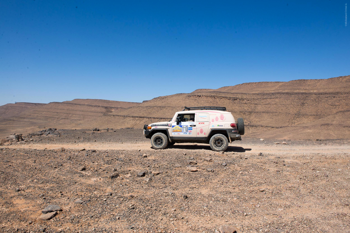 Début de journée exceptionnelle pour ce merveilleux duo, qui jusqu’à présent a fait preuve de professionnalisme. Toujours au cap, réalisant des descentes très difficiles. Il réalise un parcours sans faute jusqu’à la dernière balise. Carole et Dounia étaient le premier équipage marocain à franchir l’ultime point avant le bivouac. Emportées par la joie, leur trajet vers le campement fut fatal. Alors qu’il ne restait que 16 kilomètres pour le cantonnement, Carole et Dounia prennent la mauvaise direction. Six kilomètres plus tard, des concertations avec d’autres équipages les enfoncent encore plus. Malheureusement, Elles ont fait, a peu près, quatre vingt kilomètres en plus pour enfin arriver au camp. Une erreur de débutantes qu’elles auraient pu éviter !
