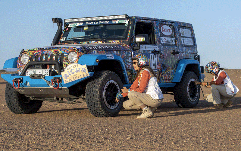 L’équipage 142, Karima LAAROUSSI MOUHYI, Anne-Marie BORG, ont bien entamé le début de cette étape. Elles se sont liées d’amitié au rallye : 10 participations pour Anne-Marie 8 pour Kika. Les 2 amies repartent à l’aventure et relèvent le défi pour faire briller le drapeau marocain. « Nous sommes très heureuses de partager cette 30ème édition. Nous restons toutes deux toujours aussi motivées, comme si c’était notre premier Rallye ! De belles parties de rigolade en perspective !!! » lance Karima. À leur 9ème et 11ème participation respective, la chance n’était pas de leur côté! Leur Jeep Rubicon les a lâchées à cause d’un problème d’alimentation, elles sont considérées en hors classement puisqu’elles ont été rapatriées par l’équipe d’orga. Une terrible déception pour les 2 compétitrices .