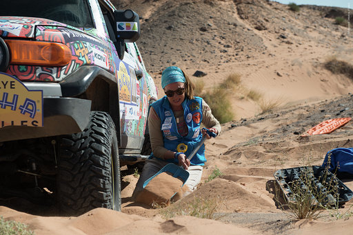 L’équipage 206, Bouchra Jennane et Siham , à entamé cette première étape avec beaucoup de difficultés. Elles ont du jardiner pendant 5h avant d’atteindre la première balise, ensuite elles ont validé la deuxième balise et se sont décidées à rentrer au Bivouac en ayant deux balises sur sept validées. « Ça été pénible et difficile. on a galéré pour arriver au CP 1. On s’est ensablée à deux reprise et on s’en est sorties comme des grandes. Entre temps nous avons aidé deux autres équipages qui s’étaient tankés. », nous confie Bouchra . Elles sont 107ème au classement provisoire avec 249,18 points de pénalités.