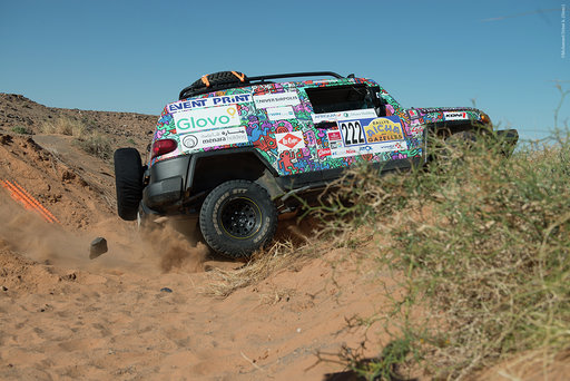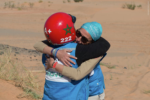 L’équipage 222, Karima et Dounia a fait un parcours plus que parfait. Tout le trajet au cap, Karima et Dounia ont fait un gros tankage une première fois, on croyait qu’elles n’allaient pas s’en sortir, vu que leur voiture était coincée entre sable et cailloux inclinée vers le bas à 90 degré. L’équipage 184 leur est venu en aide Toujours au cap, elles ont perdu 500m sur tout le parcours. Un bel exploit. Ce soir elles sont rentrées 3ème au classement provisoire et ont eu 6,61 points de pénalités.