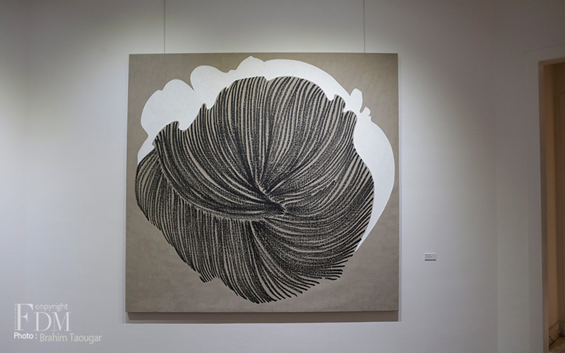 La source plurielle à laquelle puise Najia Mehadji , irriguée de ses racines occidentales et orientales, est contemplation, union du corps et de l’esprit, vérité, engagement, passage de témoin, expression pure. Le corps est là, dans la voix, le geste, le souffle. Ses mouvements, son échelle, donnent aux premiers dessins l’élan de leur gestuelle, une construction, un espace. La pensée ne lui est pas étrangère ou extérieure, elle ne fait qu’un avec ce corps qui est bien plus qu’une enveloppe. Le corps et l’esprit sont réunis sous le dôme ou la coupole, rassembleuse, unificatrice, porteuse d’un message humaniste devant l’Histoire et ses turpitudes. Coupole ou voûte céleste peu importe, le ciel ou son symbole, la transcendance ou l’ici-bas…la puissance du symbolique imprègne le vocabulaire de l’artiste. La géométrie, l’architecture, l’arborescence, la floraison, le flux, le ressac, expriment son rapport à l’infini. La musique et la danse, qu’elles soient d’Orient ou d’Occident, inspirent à l’artiste un langage pictural tendant à l’abstraction et à l’universel. Le soufisme et les paroles de Rûmi « Tout est un, la vague et la perle, la mer et la pierre…Le monde entier sommeille en chacun de nous », sous-tendent une œuvre en hommage au langage muet de la peinture et à son pouvoir silencieux.