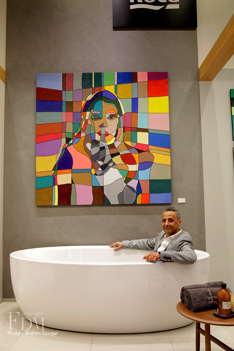 “Observer un tableau de Chebitou, c’est se plonger dans une déambulation visuelle qui s’apparente à un test de Rorschach. C’est un honneur d’embrasser les projets de Chebitou dans notre première exposition au showroom Roca El Massira. Il transformera le showroom en une véritable galerie d’art dédiée à l’artiste, permettant à tous les visiteurs d’identifier, d’interpréter, de développer et de partager l’art de Chebitou”, explique Fatima Zahra Akhamal, responsable du showroom et architecte d’intérieur chez Roca.