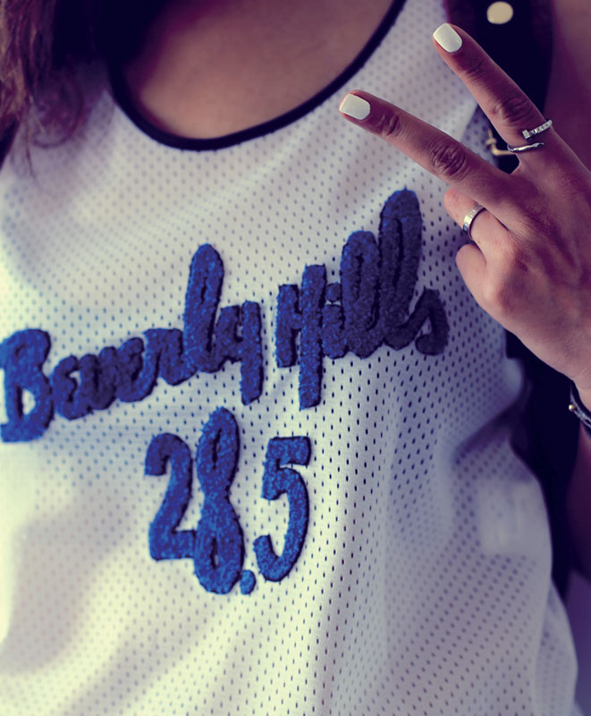 Pollini et Top en coton 28.5, CHIC AVENUE. Bagues en or blanc Love et Juste Un Clou, CARTIER.