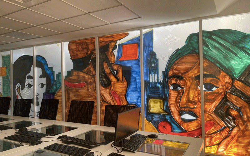 Ainsi, une œuvre artistique a été réalisée sur 15 panneaux de verre orné, par l’artiste de Street Art Mohamed Touirs Alias (Ed-oner), sur le thème de la conversation. Un thème qui reflète l’ADN de Sitel, notamment le dialogue, le métier de la relation client et la valorisation des collaborateurs, quel que soit leur âge, sexe, nationalité et culture. Le but est également de développer l’esprit d’appartenance des collaborateurs autour de l’image de marque de Sitel, et envers les valeurs de l’entreprise.