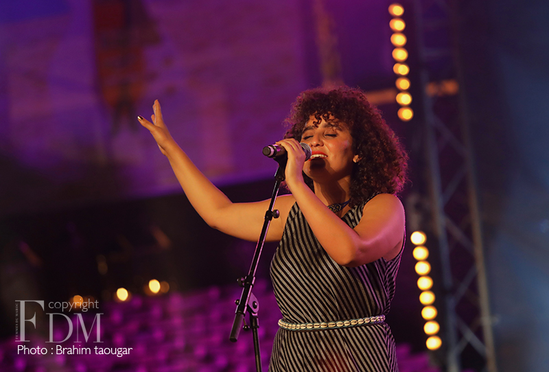 Leurs voix douces, pures et cristallines chantent l’amour et le romantisme, les liens familiaux et les valeurs identitaires. Mais aussi la force des femmes et leur pouvoir dans un monde patriarcal. La première à monter sur scène n’est autre que Soukaïna Fahsi. Cette jeune chanteuse, qui a fait beaucoup parler d’elle ces derniers mois, est pourtant une diva en devenir. Ses chansons, toutes écrites et composées par elle, nous entraînent dans une ambiance sereine grâce au choix des sonorités. Son interprétation de Kharboucha, vivement réclamée par l’assistance, est tout simplement sublime. Enfin, c’est la chanson Joudia, l’hommage à sa famille et à sa famille qui clôt ce joli concert.