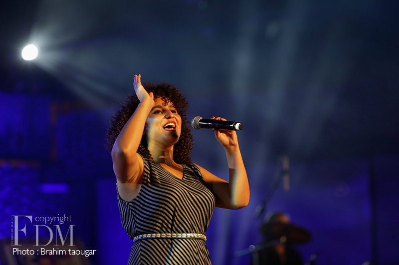 La seconde chanteuse à prendre place sur la scène du Théâtre de Verdure n’est autre que Faya Younan, la chanteuse syrienne à la voix sublime. Son tour de chant qui dure près d’une heure et demie est fortement applaudie par le public qui est totalement conquis quand elle interprète une chanson marocaine “Ya bent bladi”, suivie par une autre chanson populaire syrienne en assyrien, un dialecte locale ancien de son pays.