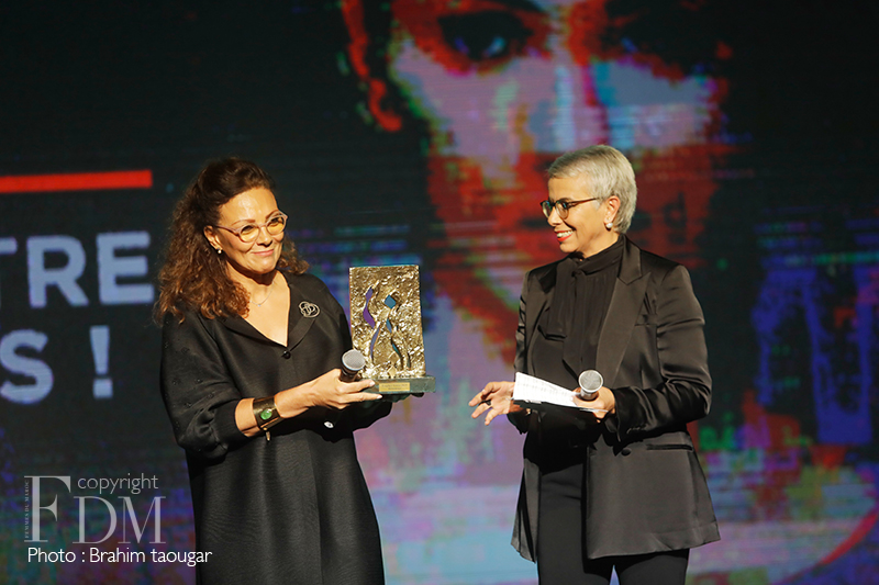 Elle était émue. Un peu plus tôt dans la soirée, l’auteure, productrice et réalisatrice Zakia Tahiri a reçu un hommage à l’occasion de la cérémonie de remise du Trophée Tilila. Le Comité Parité et Diversité de 2M a décidé, à partir de cette édition, de récompenser une personnalité ayant contribué par son travail à valoriser l’image de la femme. Zakia Tahiri a réalisé plusieurs long-métrages, téléfilms, séries, documentaires et programmes télévisés. Parmi ses œuvres, l’émission de télé-réalité Madame M’safra, diffusée sur 2M, qui a donné une autre image de la femme marocaine. Une belle reconnaissance pour cette femme qui représente l’équilibre parfait entre « force et sensibilité », comme l’a si bien dit sa fille dans un reportage projeté à l’occasion de cette remise de prix.