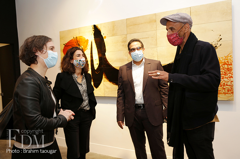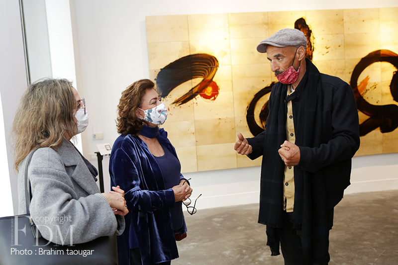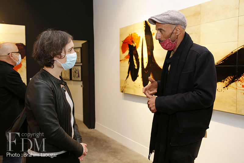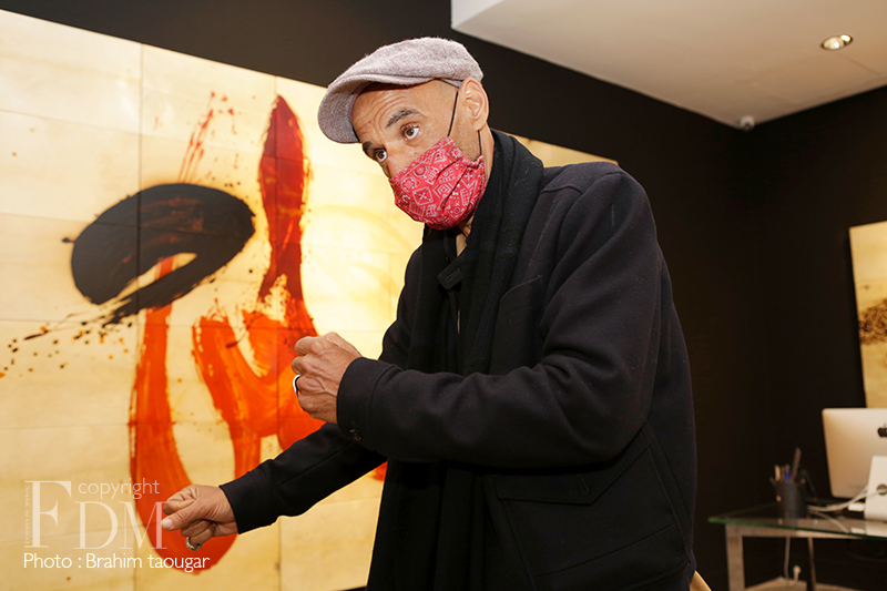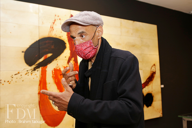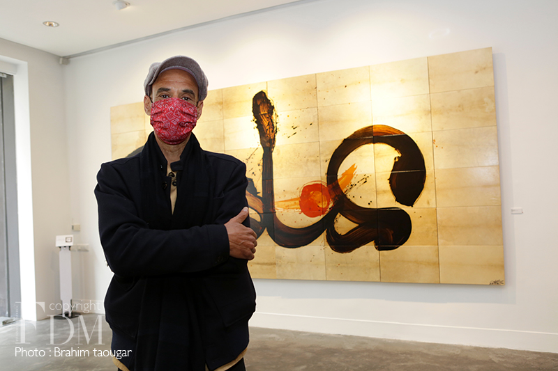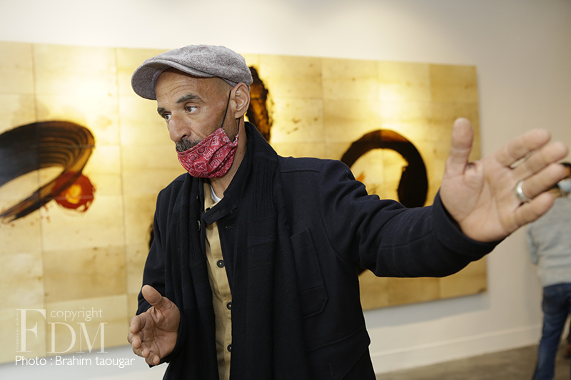 Le travail lent, patient et méticuleux est hissé au rang de sacerdoce pour cet artiste calligraphe à l’origine pour qui réaliser une œuvre plastique est une forme de prière. Aussi, comme l’écrit si bien le critique d’art Abderrahman Benhamza, « transformée, désincarnée, la lettre, irréductible à la seule consommation intellectuelle, retourne à sa forme essentielle qui est non verbale, elle s’abstrait à tout pragmatisme circonstanciel, pour n’être plus qu’esprit mouvant dans l’espace uni et éthéré du tableau/monde. »