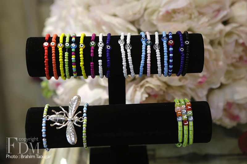 Proposées au prix de 200 à 1200 DH, les créations de Yasmine El Mernissi séduiront par leur élégance et leur sublimation du bijou oriental. Les bijoux charity destinées aux associations sont vendus au prix de 40 à 500 DH. La totalité des recettes sera offerte à des associations.